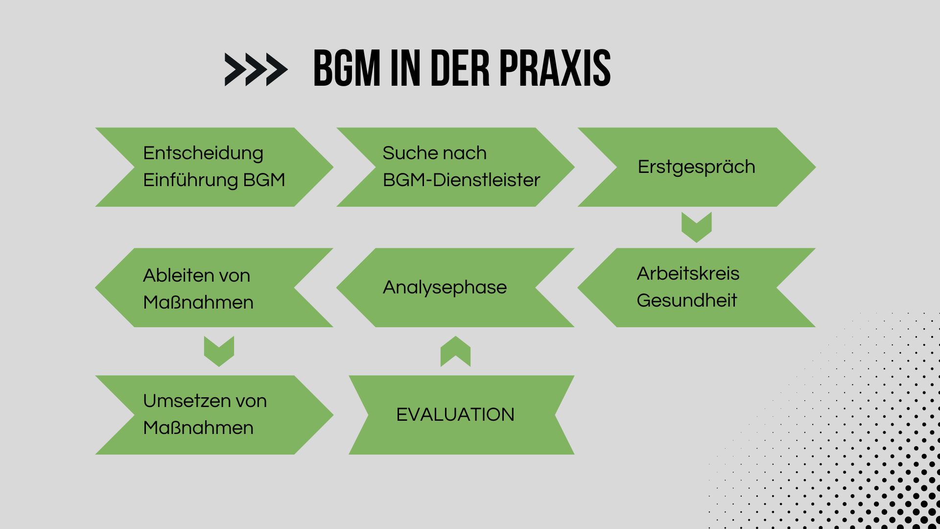 Von den ersten Gesprächen über die Durchführung gezielter Maßnahmen bis hin zur Evaluation – eine umfassende Begleitung ist entscheidend für den Erfolg des betrieblichen Gesundheitsmanagements. Es geht darum, die Bedürfnisse der Menschen zu verstehen und mit einfachen Mitteln erste Erfolge im BGM zu erzielen.