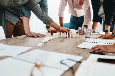 Beim Dominoeffekt geht es darum, dass jedes Teammitglied und jedes Team als Teil eines größeren Ganzen gesehen wird.